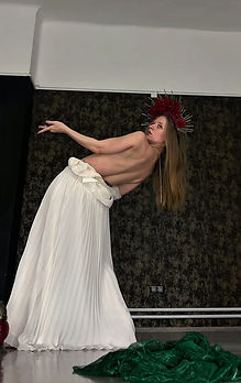 Inspired by Ukrainian folklore, “MAVKA” is a gothic ritual act blending sensual movement with dark mythology. Crowned like a forest spirit, she moves between seduction and possession, turning the stage into an altar.